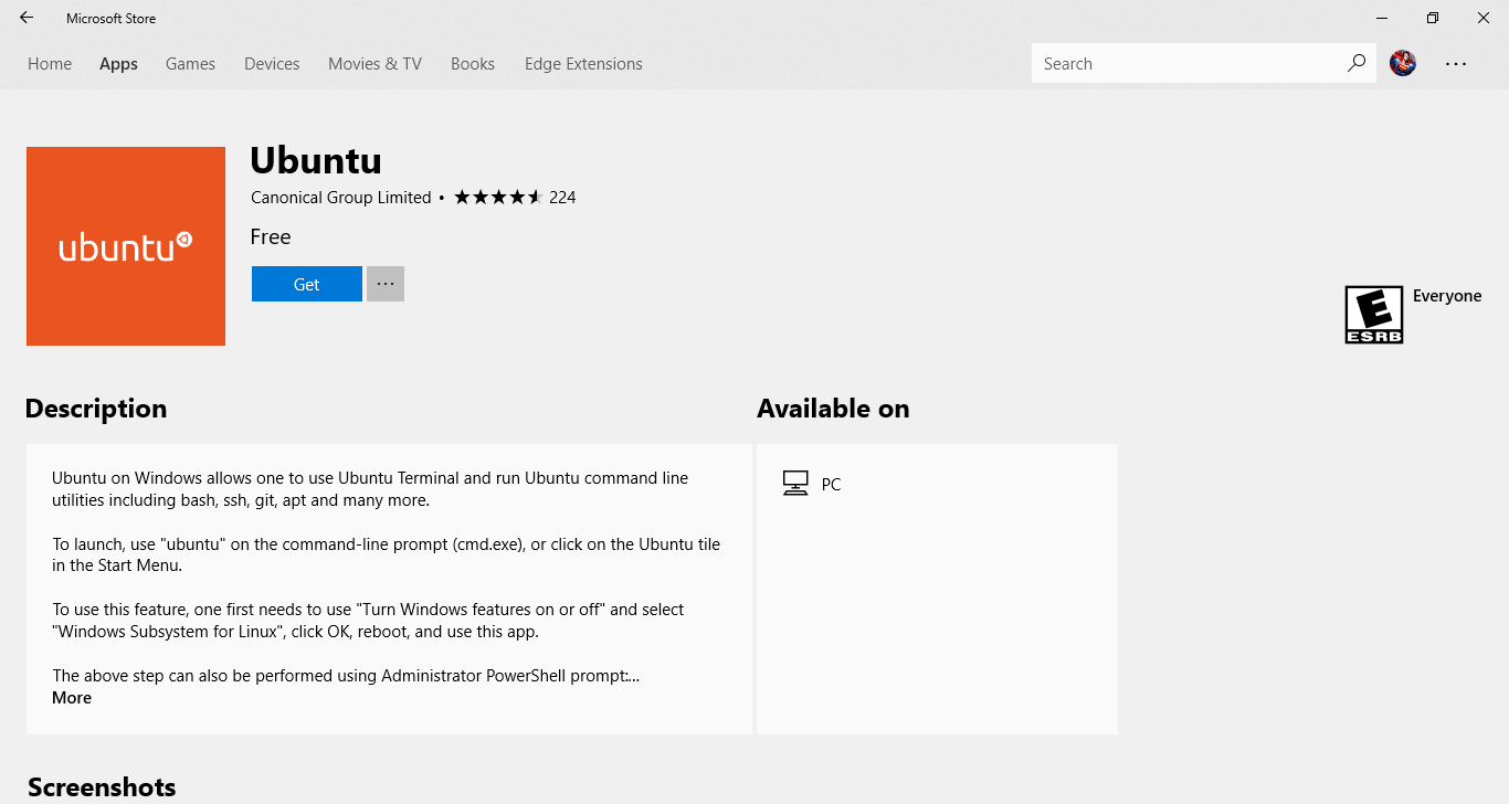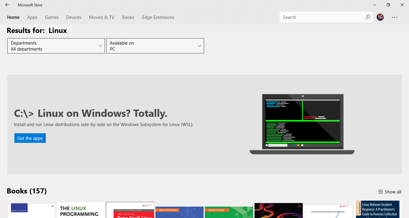 Now search for Linux in the Store. You’ll see a special section below that will allow you to install Ubuntu or any other distribution right from within the Store app.